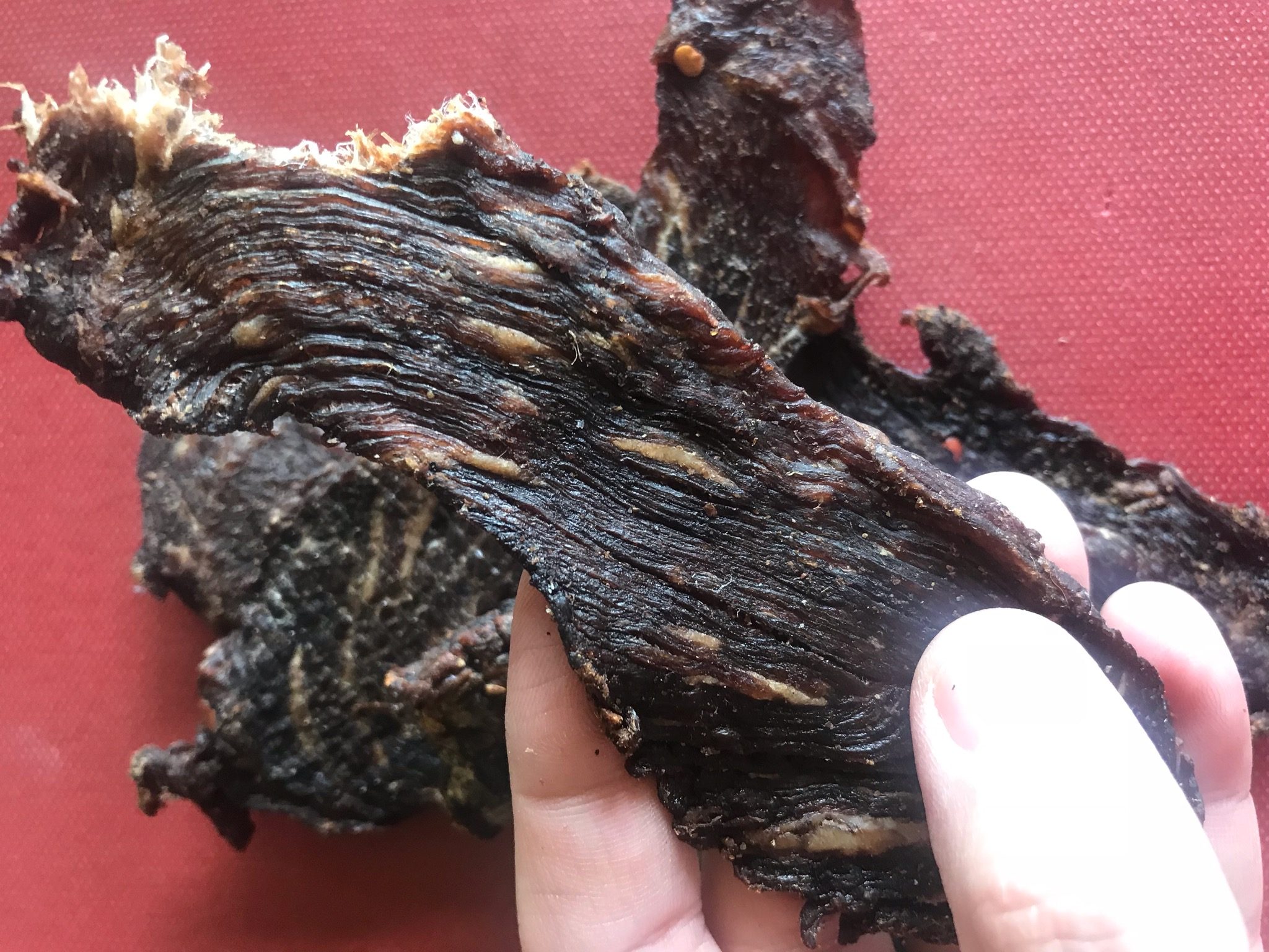 I use this electric meat slicer to come up with a more proportioned sliced meat, but it can gum up in the slicer wheel blade as the meat starts to thaw. I already had the electric slicer, but when I am ready to make my next purchase, I want to order this slicer. It doesn’t require a partially frozen meat or electricity and has a solid construction. Of course, if you are capable of cutting the meat thinly and evenly, then a sharp knife and a cutting board is all you need! A uniform cut is necessary for even drying.