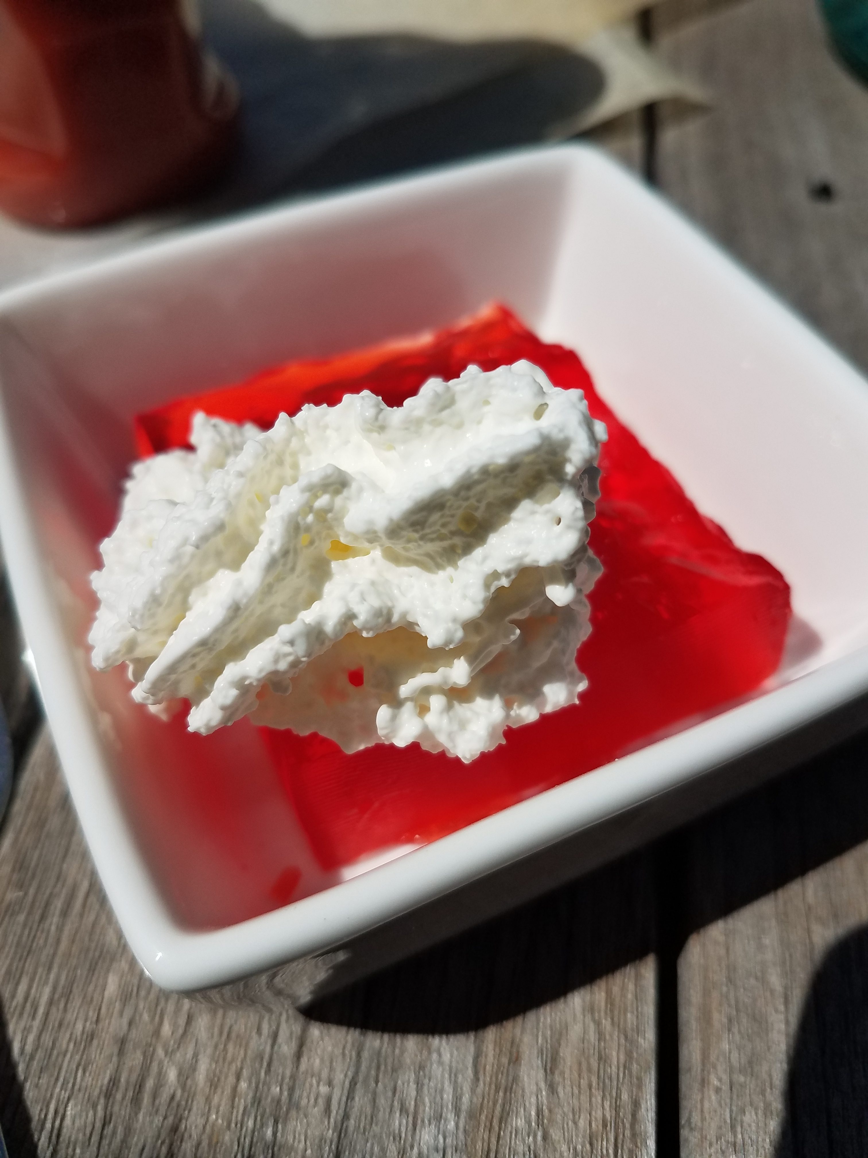 The easy Jello desserts are easy to make and are ready in just minutes! They only require water, sugar free Jello powder, and an optional squirt of whipped cream!